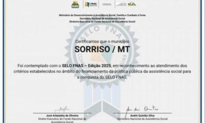 O reconhecimento que a Prefeitura usou, com responsabilidade e eficiência, todos os recursos destinados à área de Assistência Social em 2024. Sorriso recebeu, do Ministério do...