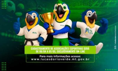 Lucas do Rio Verde1 minuto atrás Associações esportivas devem realizar cadastro junto à Secretaria de Esporte e Lazer A Prefeitura de Lucas do Rio Verde, por...