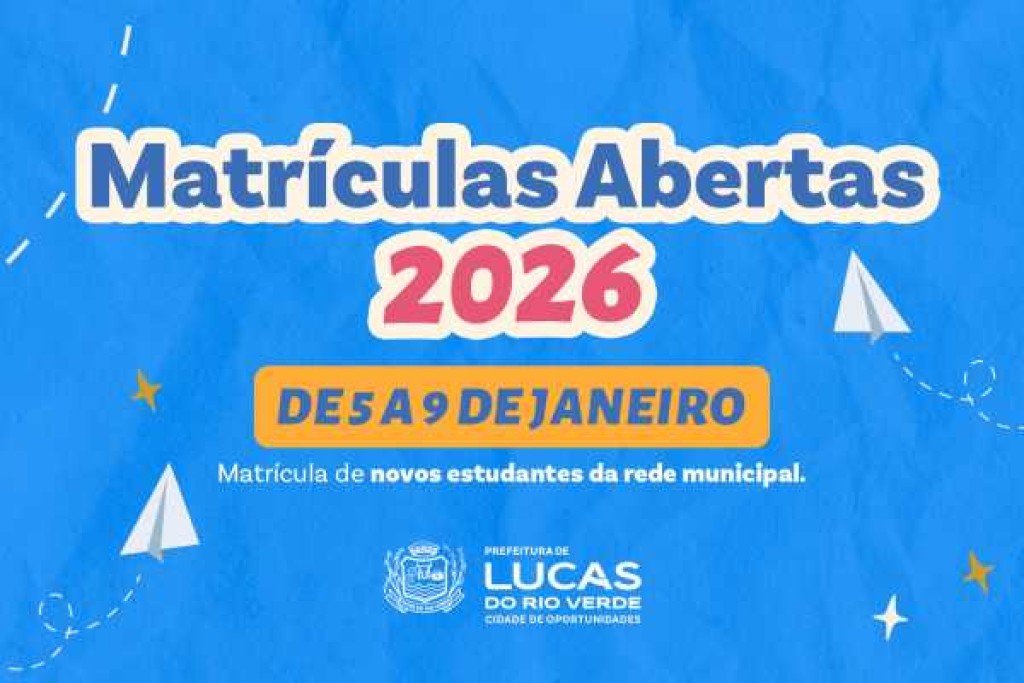 A Secretaria de Educação informa que o período de solicitação de vaga para matrícula de novos alunos na rede municipal de ensino e para creche (fase não obrigatória) começou nesta segunda-feira (5) e segue até o dia 9 de janeiro (sexta-feira). Conforme a Portaria nº 2233/2025, o pedido deve ser feito on-line pelo site da Prefeitura de Lucas do Rio Verde.