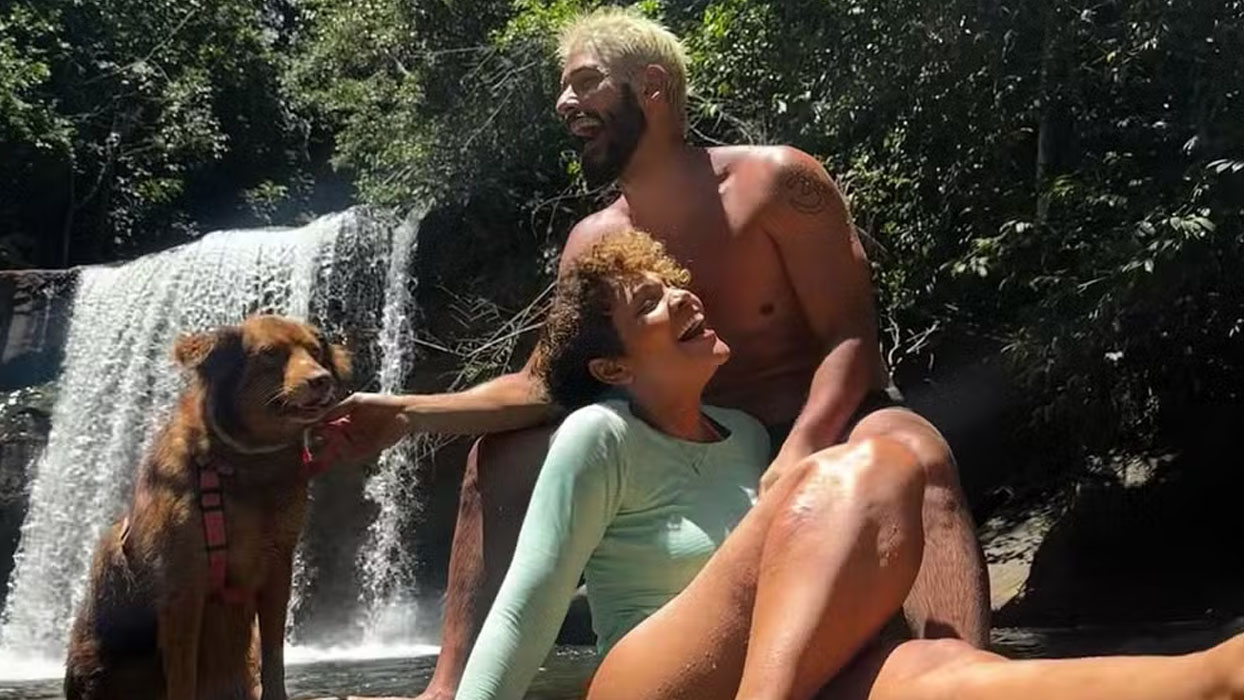 Para revelar a gravidez, Gabriely publicou um ensaio fotográfico ao lado do atleta e dos pets. Nas imagens, ela aparece usando um vestido branco que destaca a barriguinha, enquanto Endrick surge com camisa branca e calça bege, em um cenário ao ar livre em meio à natureza.