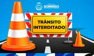Fechamento ocorre das 8h às 17h, no trecho entre as ruas Vinicius de Moraes e Primavera A Secretaria Municipal de Segurança Pública de Sorriso, informa que...